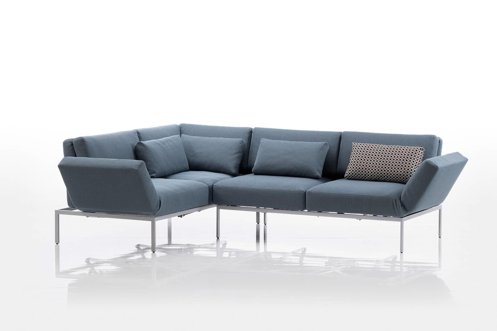 Auch als Ecksofa bietet das roro/20-soft Multikomfort in höchster Raffinesse: roro/20-soft zeichnet sich mit seinen dicken Polstern durch besondere Weichheit und Gemütlichkeit aus. Ein filigranes Untergestell sorgt als Kontrast für eine luftige, klare Erscheinung. Die Version roro-medium und das kompaktere roro-small sind schlanker und im Polster etwas fester. Beide Versionen sind miteinander kombinierbar.