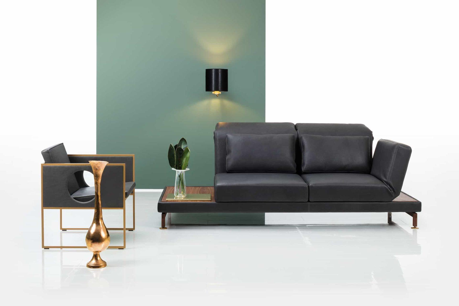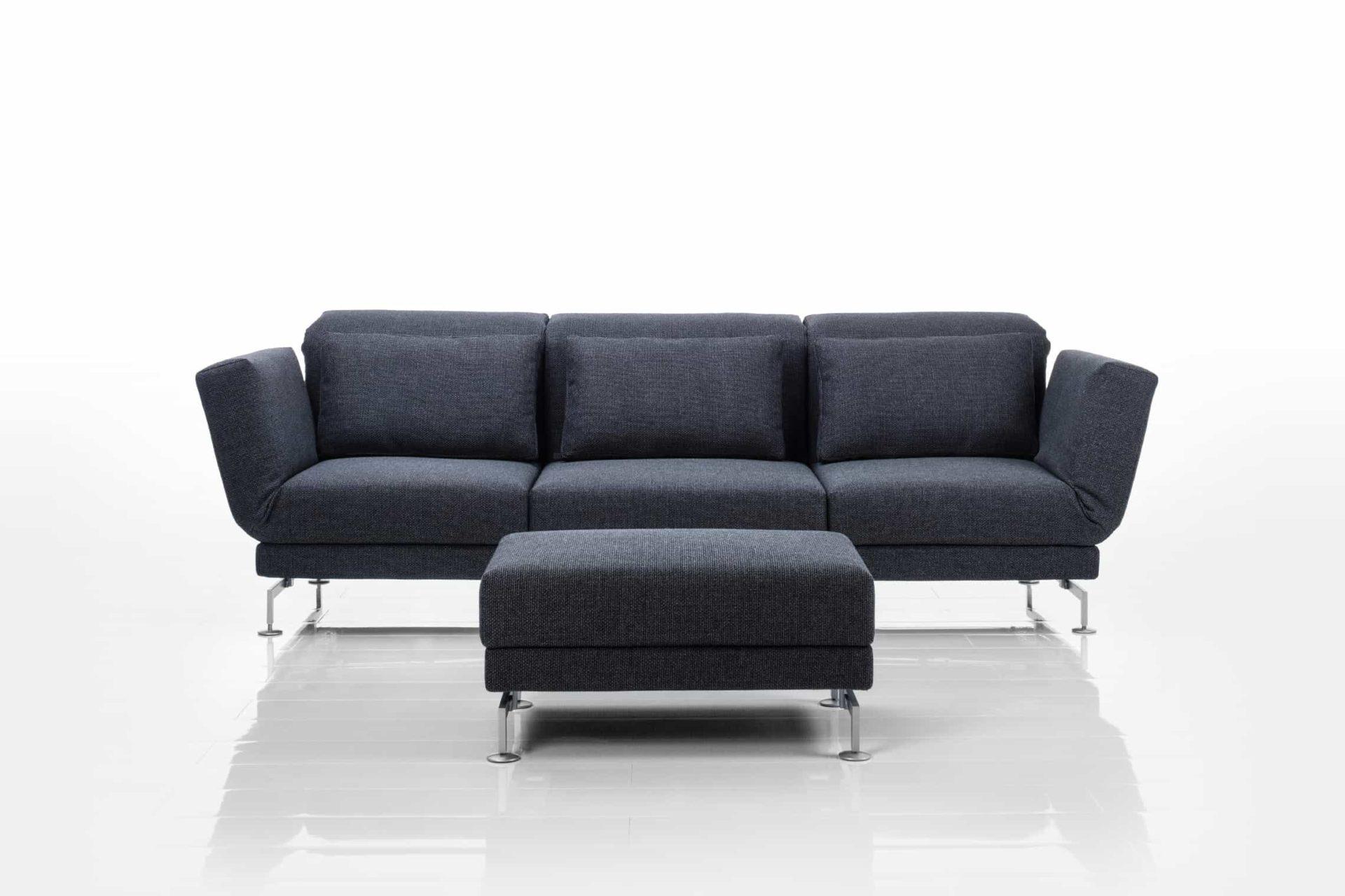 Das Sofa moule von Hersteller Brühl steckt voller Ideen! Dank raffinierter Drehelemente und flexibler Lehnen lässt sich z. B. aus einem Zweisitzer ruckzuck auf kleinstem Raum eine Schlafstatt für zwischendurch oder ein Doppelbett machen. Großzügig dimensioniert bei moule-medium oder mit kompaktem Maß bei moule-small. Separat zum Entspannen vorschwenkbare Sitze und stufenlos absenkbare Arm- und Rückenlehnen ermöglichen vielfältige Entspannungspositionen – bis hin zum bequemen Liegen. Die klappbaren Armlehnen räumen ruckzuck Platz ein für ein Nickerchen und die eben noch formelle Eckgruppe wird zur gemütlichen Lümmellandschaft, ohne dabei an Eleganz zu verlieren.
